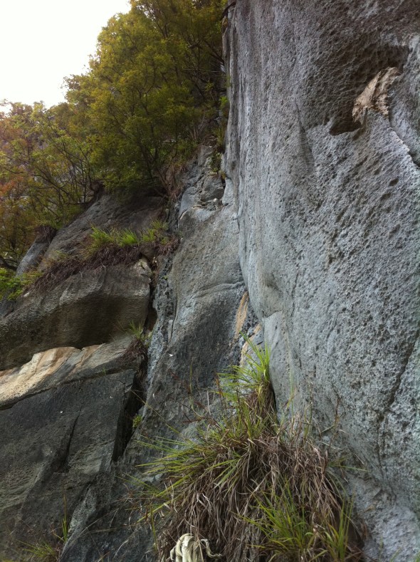 Pitch 1 was a beautiful slightly steep corner leading up to a ledge, where the vegetation covers a climbable face. I put in some trad gear and lead up a crack to the right of the route before going back left into the vegetation. Thats where the anchor was hidden.