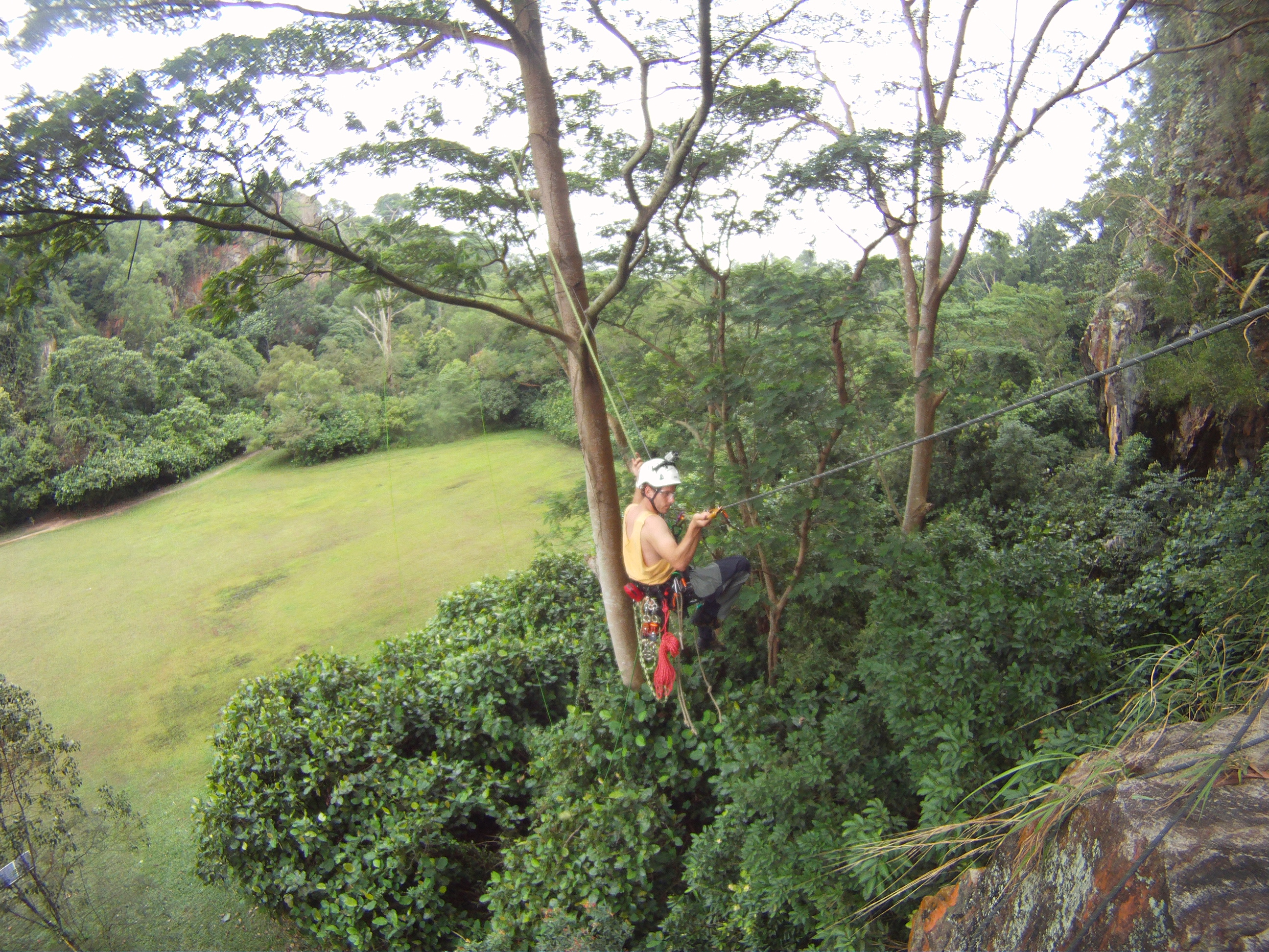 It all started when I got Jordan to help me with the rigging for my photo shoot in Diary Farm on my favorite crack line, Super Crack. It was his first time to Dairy Farm and he totally loves it! As we were walking into the crag, I randomly throw out the idea that a slackline could be tied from a rock face to a nearby tree. We loved the idea and got down to business to check out the right spots. Before we knew it, on our second visit to Diary Farm together, we were on it and the video is the results!