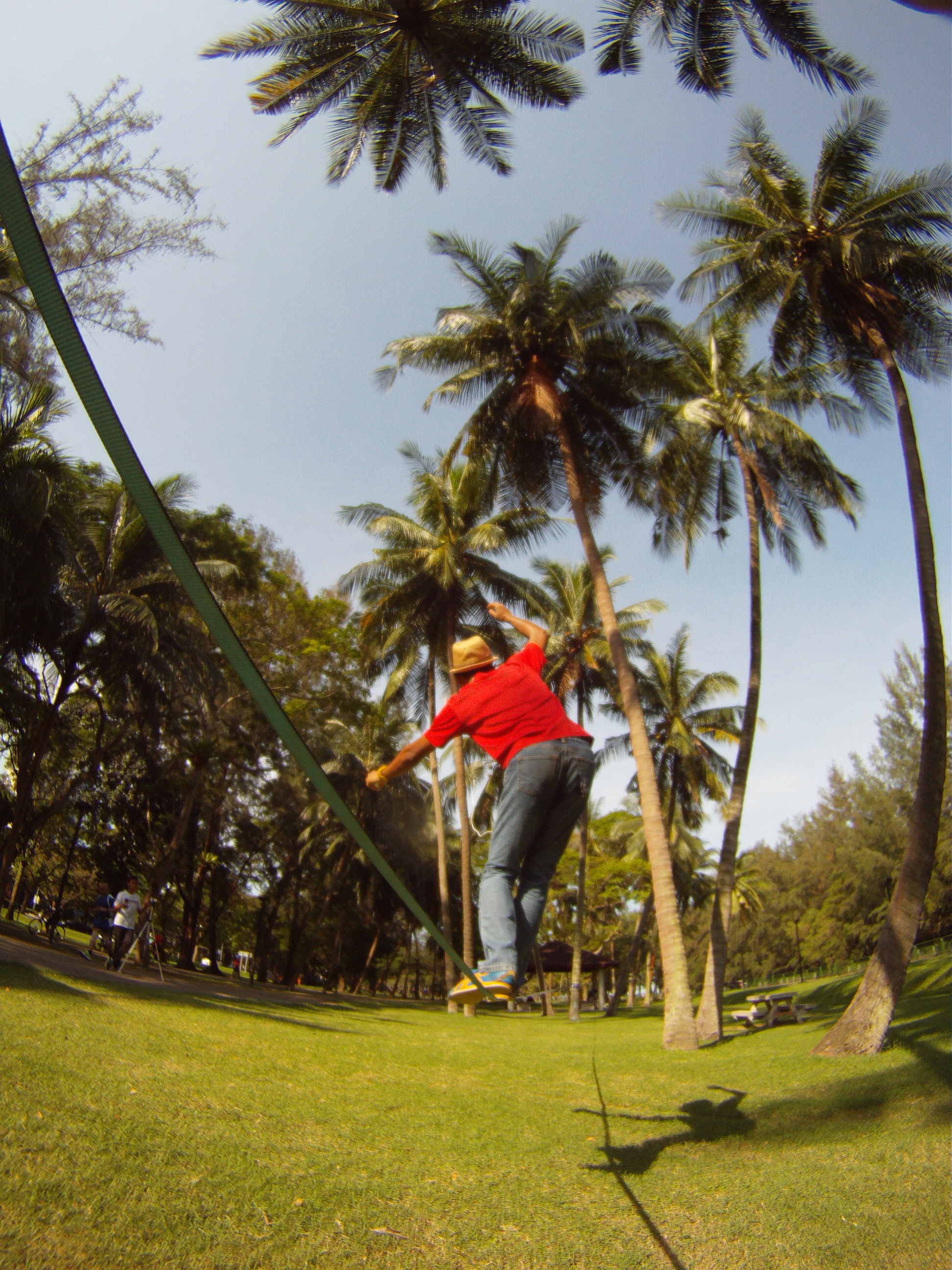 Too many weekends in WCP so we decided to move and slackline in the ECP ! Here’s some photos of our usual weekend setup.. 1 X blue wing 30m line, 1 X 25m freak flash and 1 X 15m freak flash (low line)