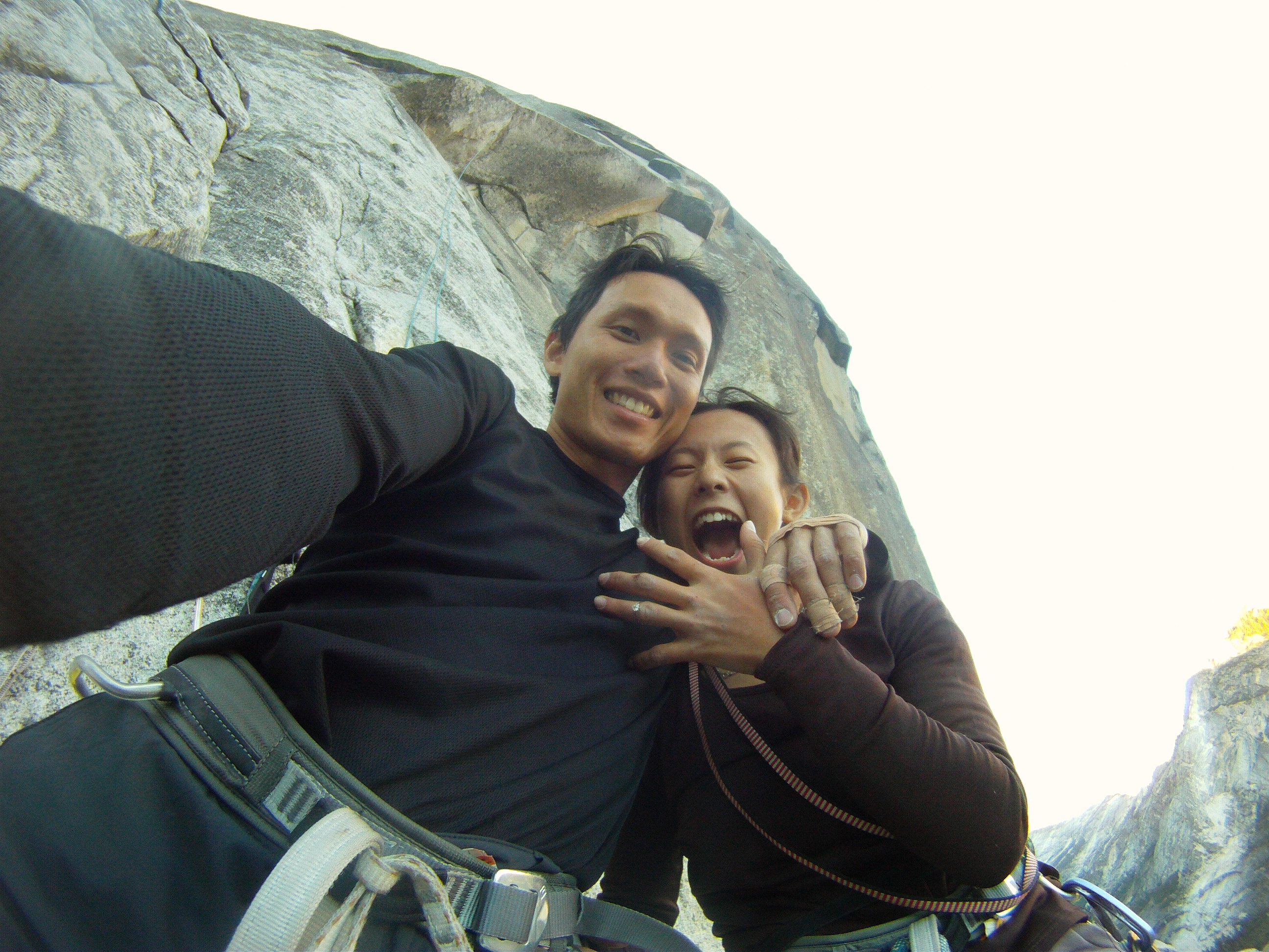 Climbing the rock with a rock in my pocket. She said yes even though the ring didn’t fitGetting to the top of El Cap was something i wanted to do. Climbing it with the person I love is a mega bonus5m short of my target, but it was a short term goal to reach the 100m mark by the end of the year. Elephant Slacklines Singapore was something i did not set out to do.. but chance uponClimbing on Marina Bay Sands was a special moment for me, it wasn’t about the live segment on ESPN nor is it about the competition. It was actually the first time my family gathered and watch me climb. Although it wasn’t the typical rock that we usually climb, but still great to hang around at the starting belay point and see your family there. Our new place in Jalan Batu is something i set out to have too. I have been moving in and out of 4 places since i was 22. Now Kelly and I finally bought our little pad. =) Can’t wait for it to be ready this Sunday.My first car camping trip in US. I have met amazing people during the solo trip and also learn a great deal of stuff like stealing showers, hooking up with random climbers and waking up at 4am in the morning to beat the toll booth. Basically learning how to be a dirt bag..=)Our 1 year anniversary cooking and eating maggi at the back alley of this street. Not exactly broke, but just wanted to stick to the budget for the trip. It was a great experience though.My last big bike.. before i sold it for my trusty proton. I love my bikes and I miss the days when we did road trips like there is no tomorrow. I call him Dumbo Jumbo.What can i say? My first highline send was a mind blowing experience..Although i look like a inverted carrot.After i jumped out of the plane for the first time, I told my friend it felt better than sex!Super Crack 5.12 My boldest send on trad with Yourui (DF guru) It wasn’t the hardest shit I climbed but it help me realize that a lot more can be done if we are not afraid.