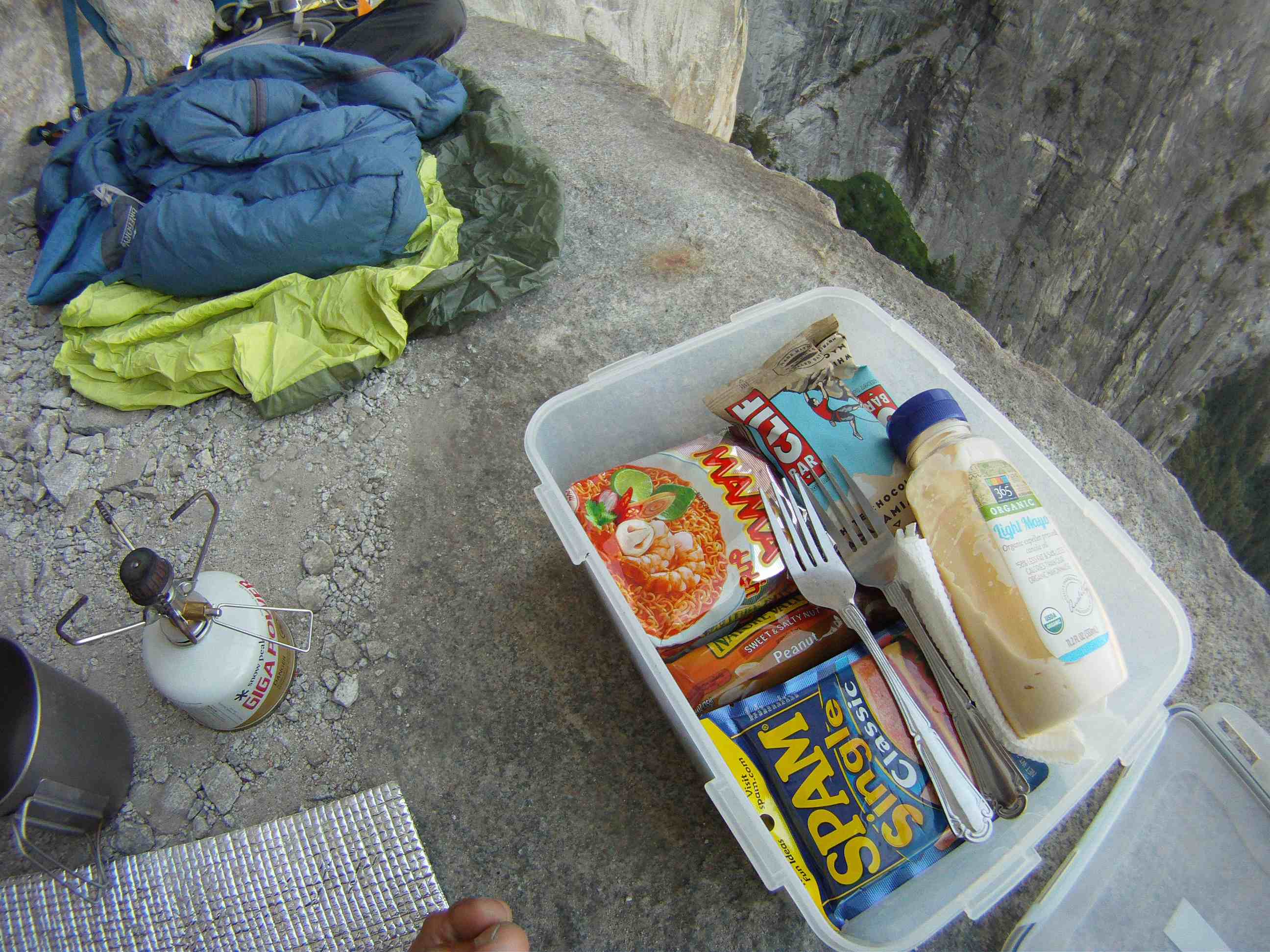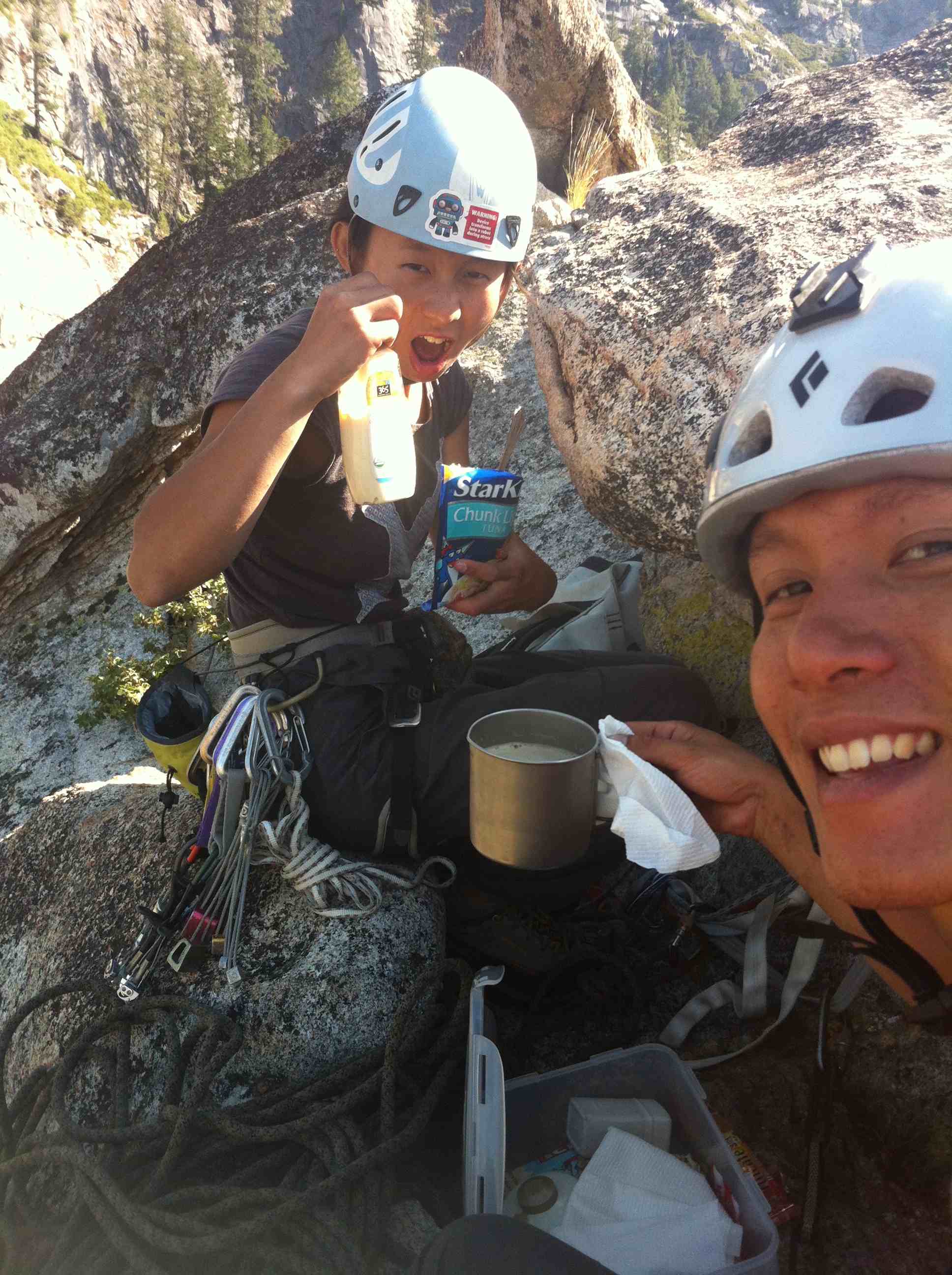 Descent to Ahwahnee Ledge and had a great dinner with a ziplock bagged of rice and black diced beans with fish can food! Followed by pineapple tarts from Ranch 99 and drank like 2 litres of water.