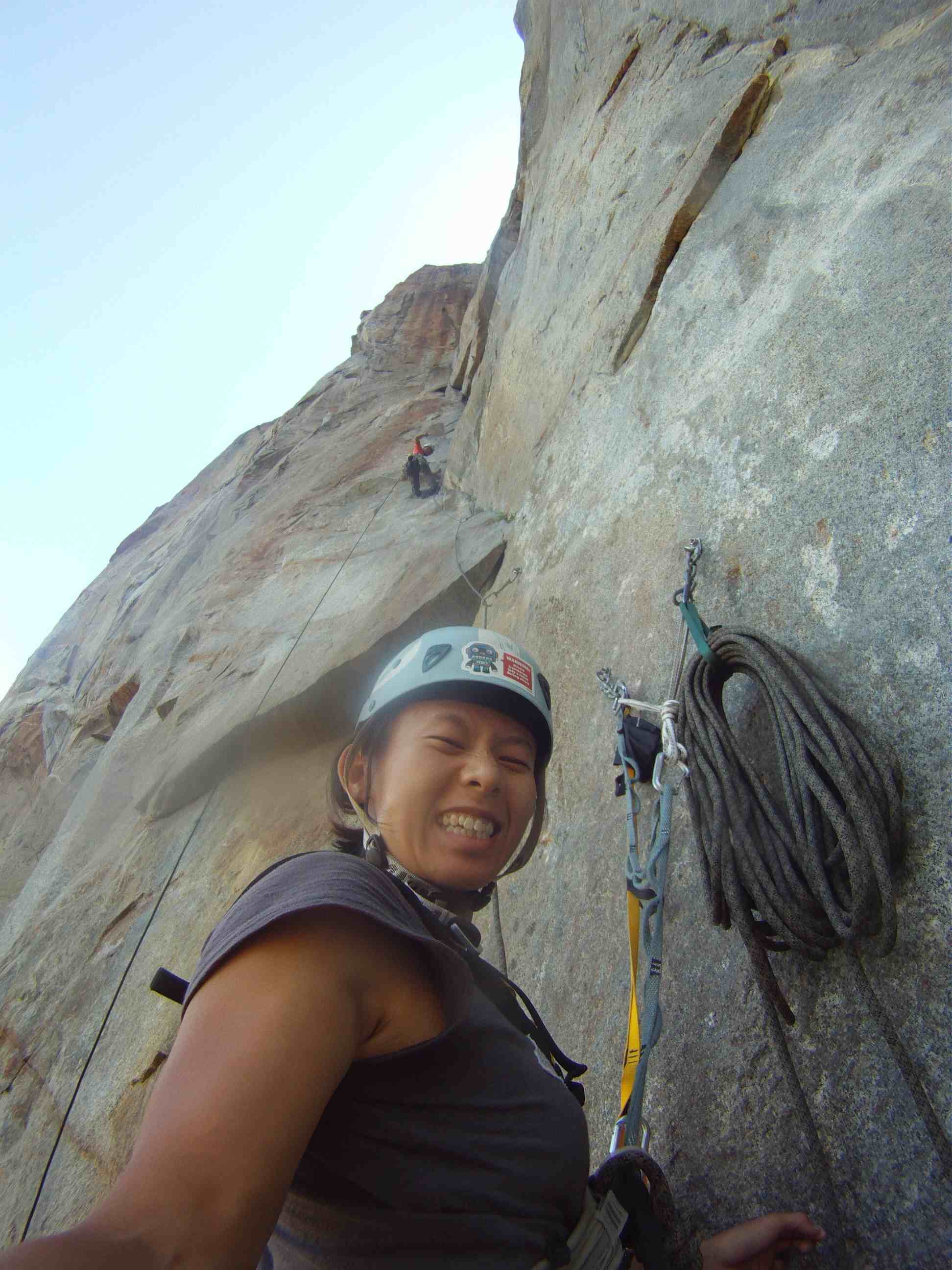 Knowing that I fixed to pitch 6, I knew we would top on that day so we climbed at a leisure pace, eating a big breakfast, photo whoring, and just fooling around on the wall.