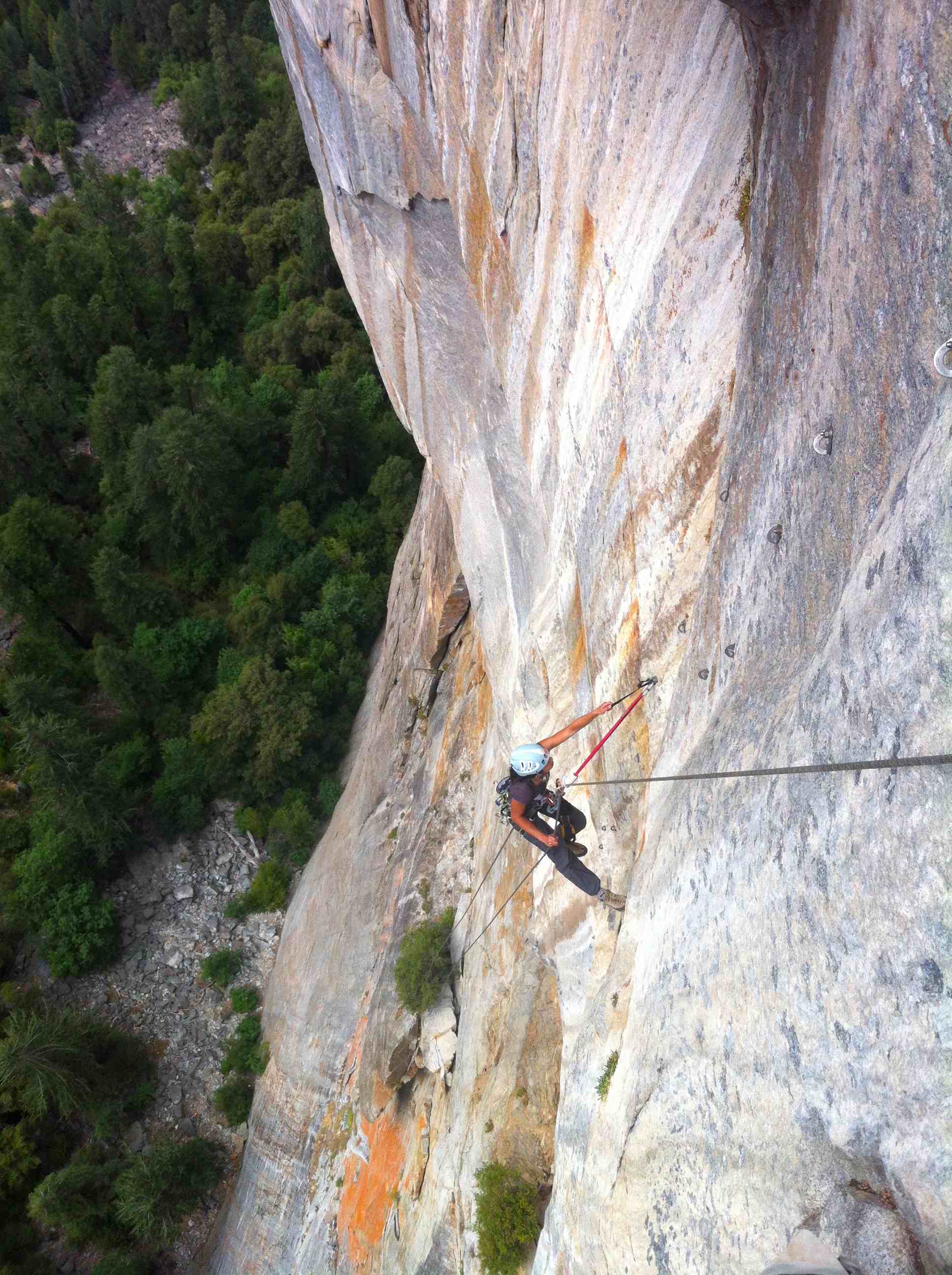 This is the first big wall Kelly and I got on since we arrived in Yosemite 2 months ago. We have been taking our time exploring, hiking, climbing and working. Generally just taking our time to see Yosemite than to just come here with a massive tick list and go on wall after wall rampage. Kelly is feeling more confident on climbing, leading and aiding and I’m starting to get more confidence in harder climbs and freeing moves on the big wall with my 5.10 approach shoes.