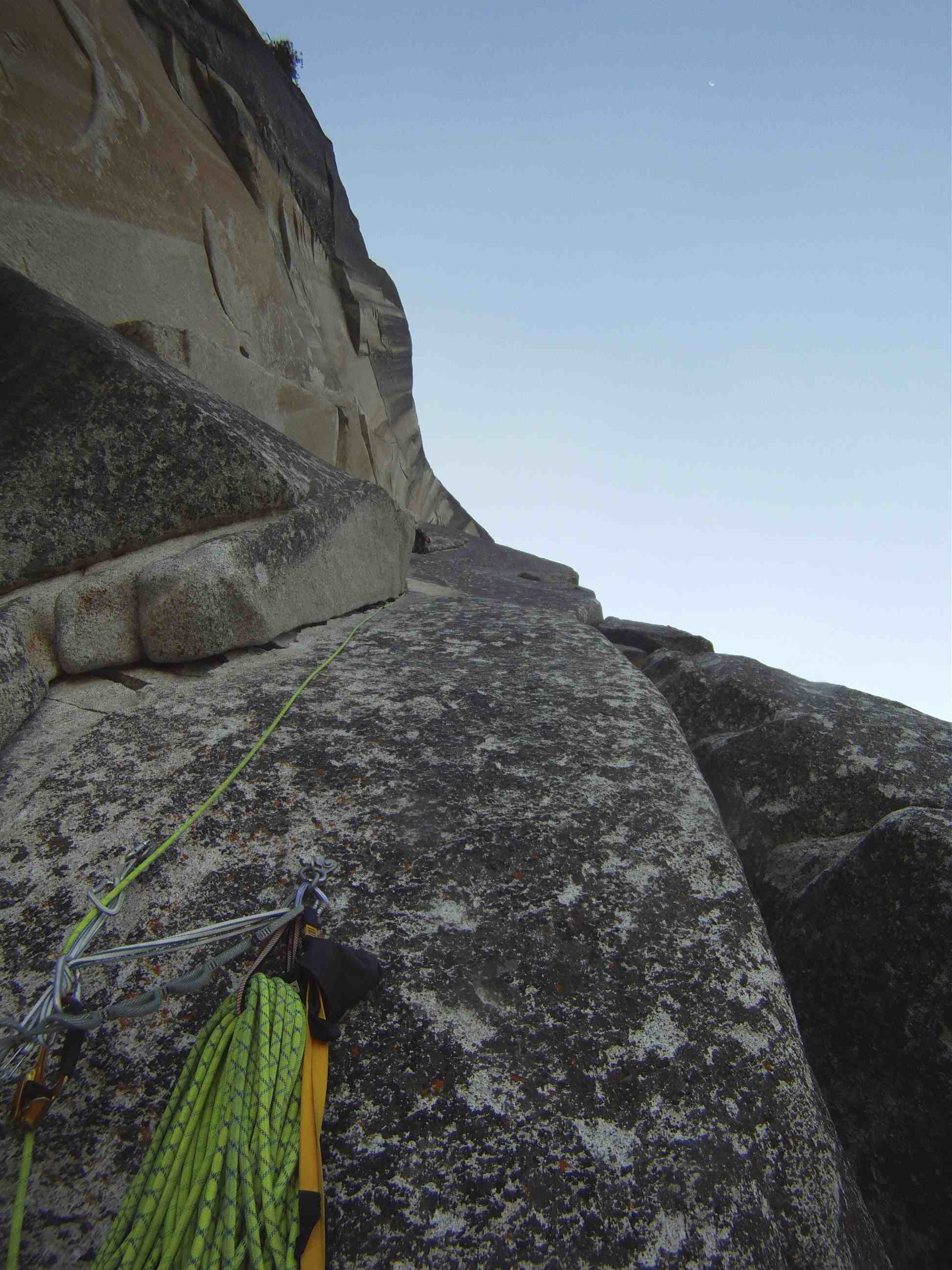 Alarm came on at 5am, snooze monster sat on us till about 5.30am and finally left bivy site at 630 and started jugging at 7am. That’s where all the nobs mistakes start coming in. We brought 1 pair of jugs and when I got to the top of pitch 2 on our fixed ropes, the ropes were hanging too far out and I couldn’t get it back to Kelly. Bummer, now I have to descend and pass her the jugs while i prussic my way back up to pitch 2. Exactly the kinda things that you do not want to do when you are trying to climb a big wall in a day.