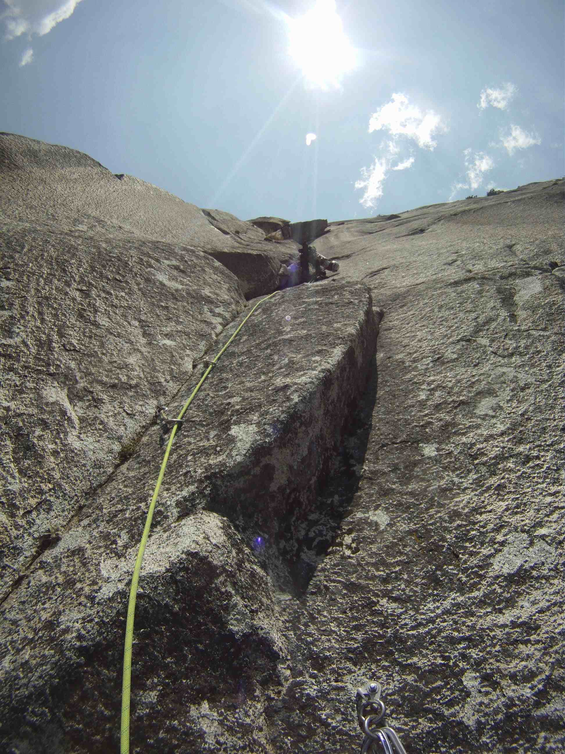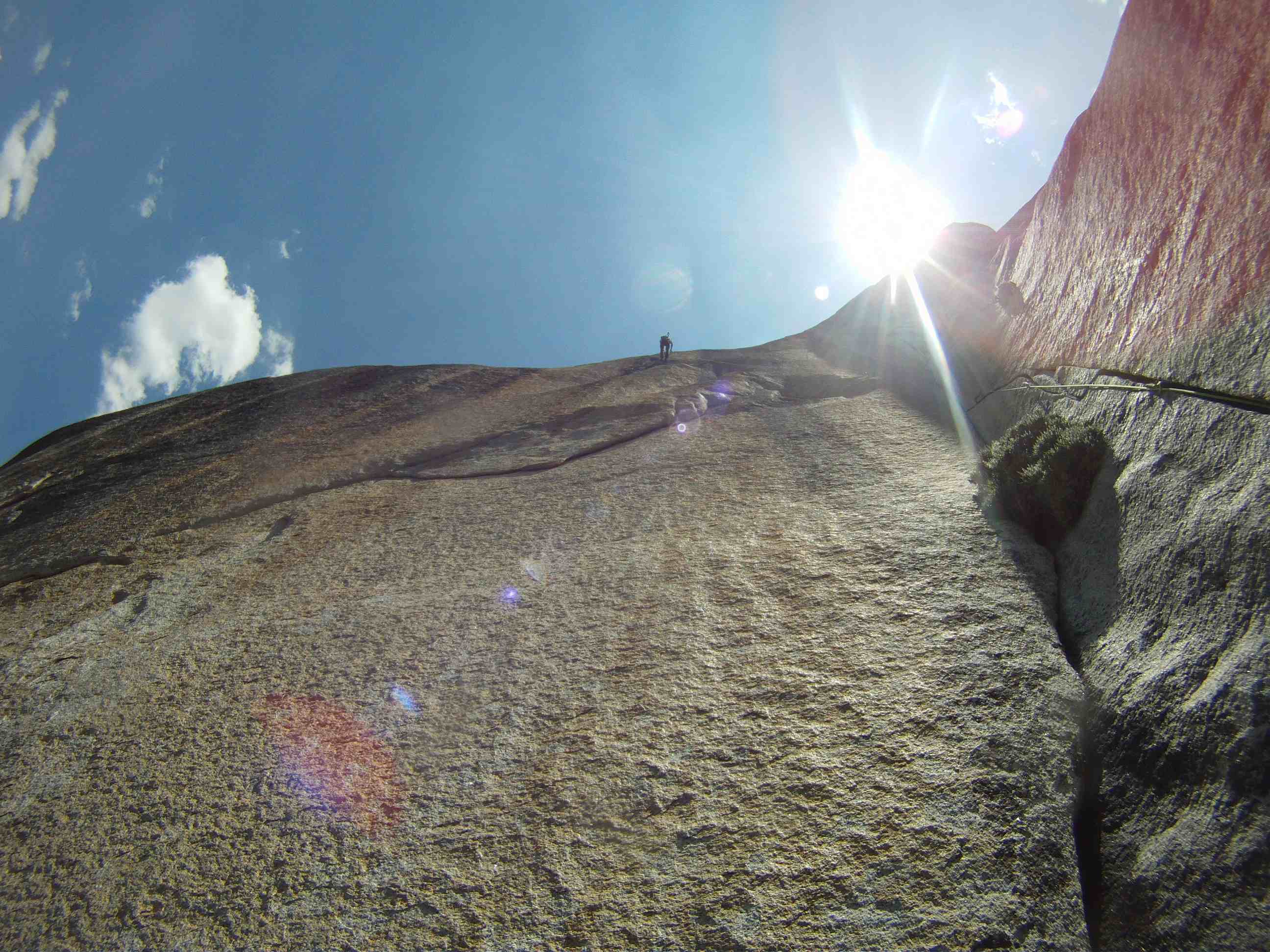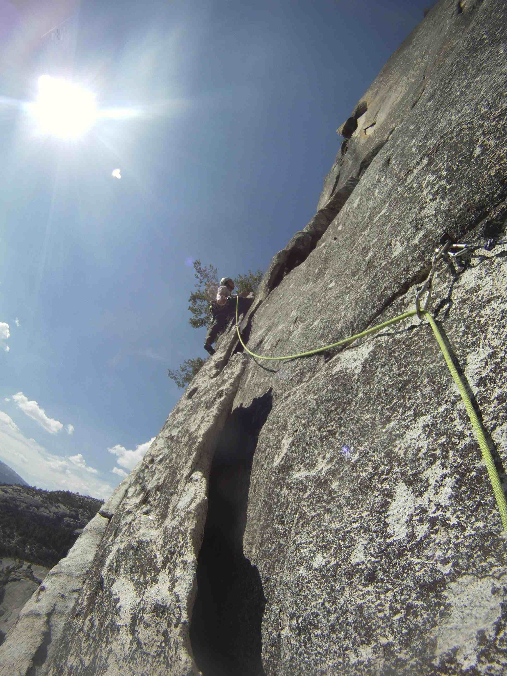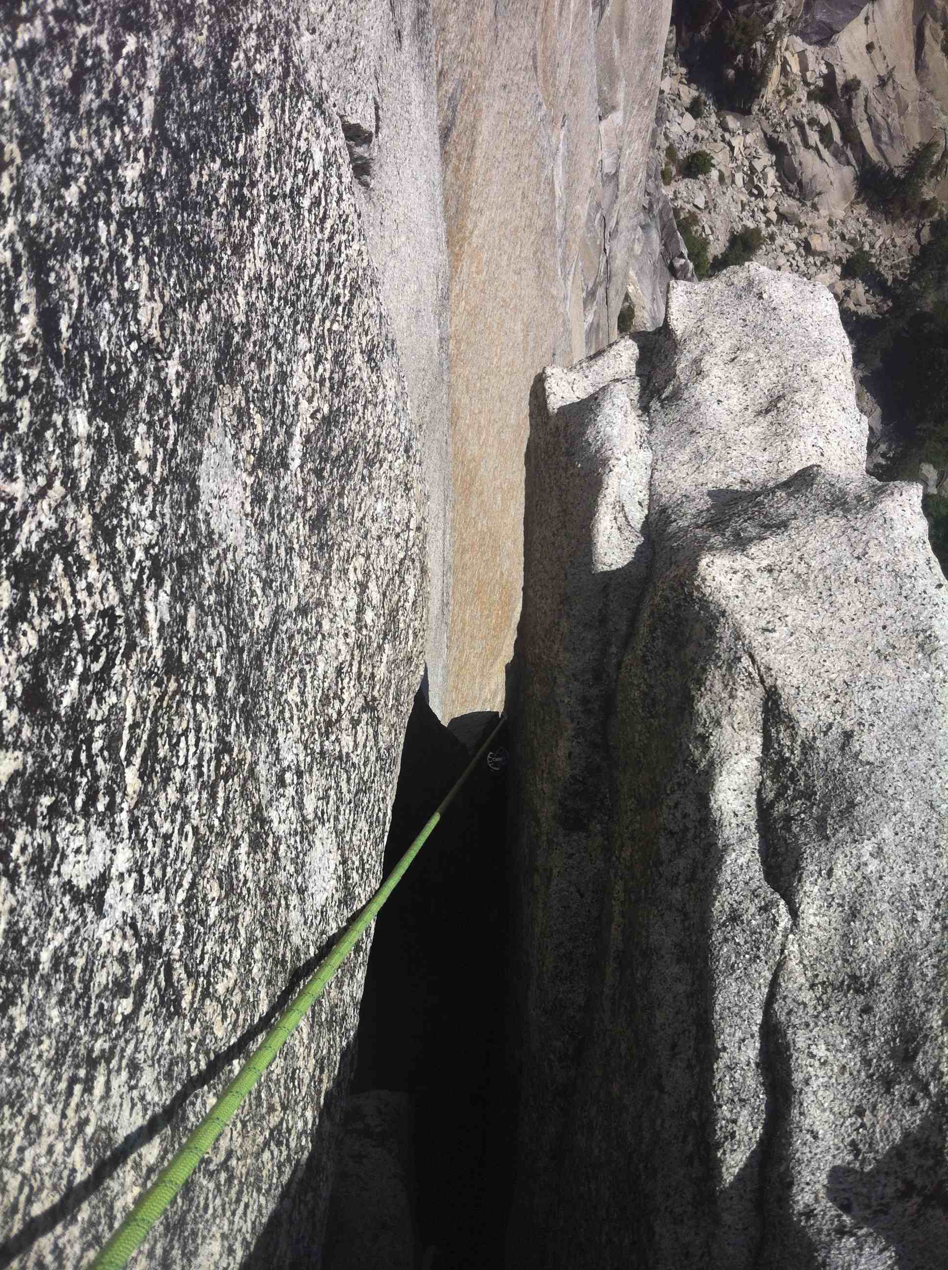 By the time you get to start of pitch 6 the whole of Nevada falls can be seen and that view is amazing! Enjoyed the view and starting to feel the effects of the big wall taking a toll on me. I started off with pitch 6 which I think would be a incredible climb but a little too hard and I was fatigue. I aid climb most of it before free climbing the squeeze. Did not encounter the death block during the climb that people talked about.