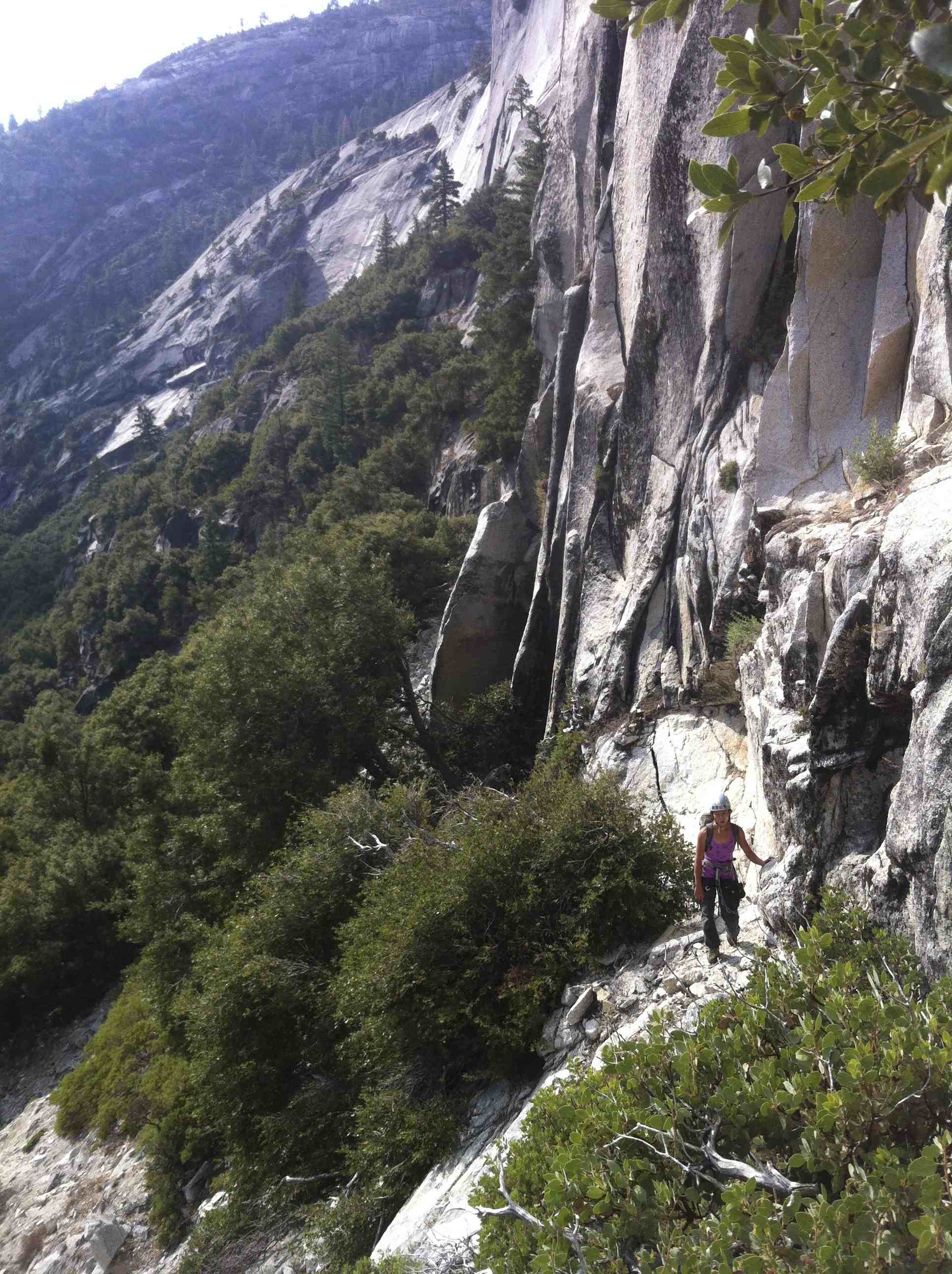 The approach was uneventful and warm. Carrying those gears for the climb and bivy was not fun and we have to stop 2 times to make it to the base of Liberty Cap.