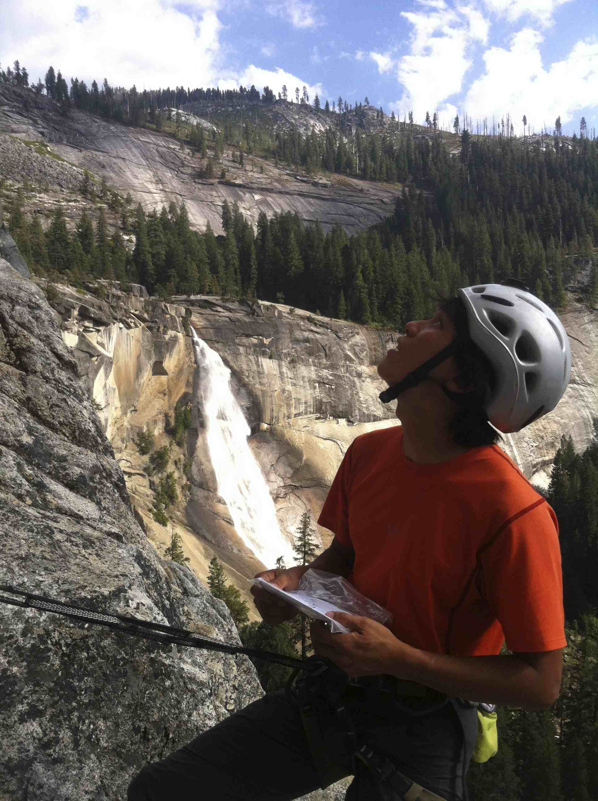 We planned and packed our bags for bivy under the route on the 1st day making just the approach up Mist trail, fix and free pitch 1 and 2 and gather water at Nevada Falls.