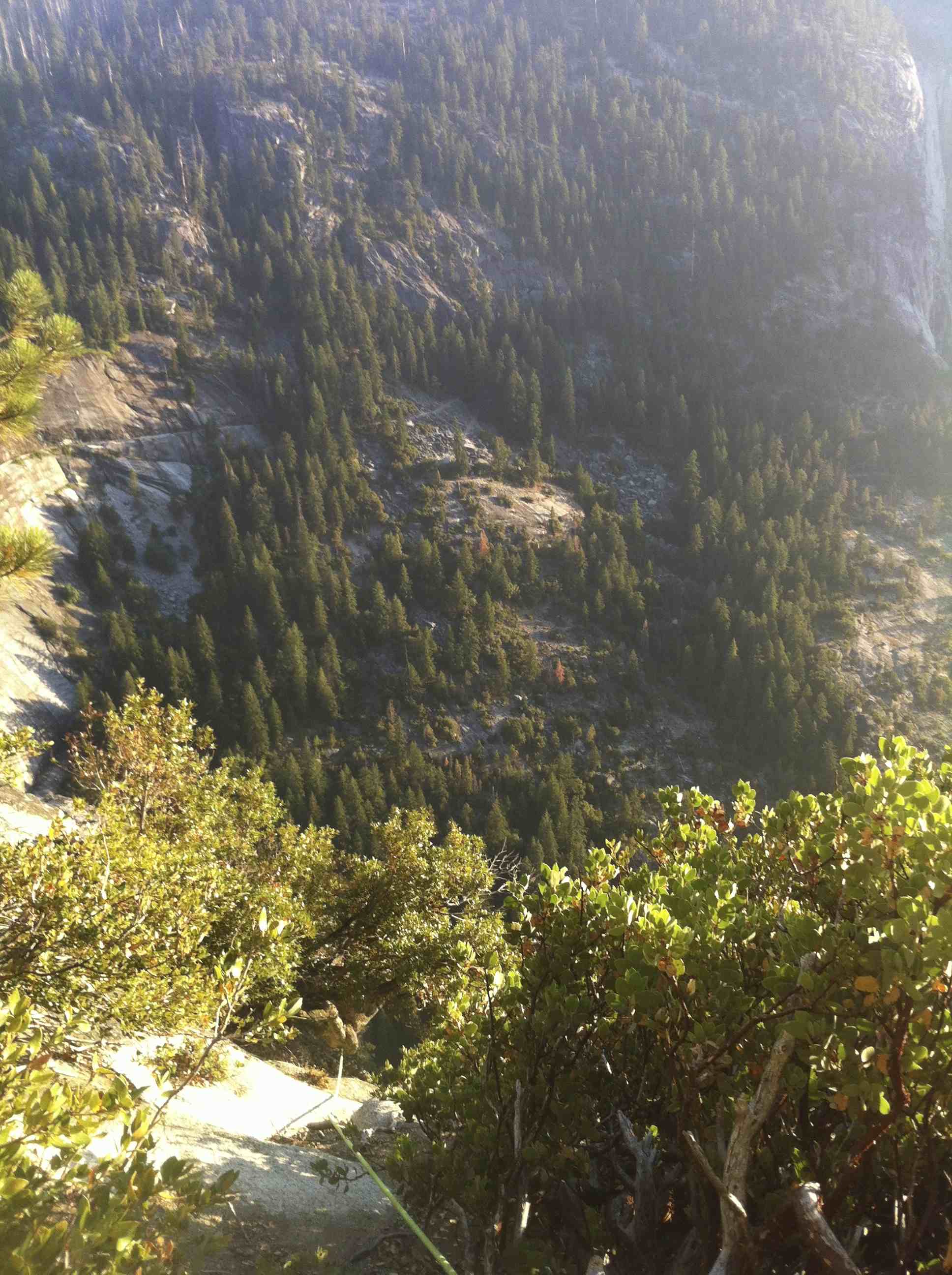 PItch 9 was a maze to navigate through the bushes. Not pleasant at all. Pitch 10 and 11 are pretty quick as its all getting dark and there was no time for photos, all that was in my mind is ‘I do not want to climb the 5.8R pitch 11 in the dark’ So we did get to the top just before the sun set behind Half Dome and the other walls to our left. There was a sign of relief and no celebration when we got to the top. All Kelly said to me when she got to the top was, “I cannot make it already”