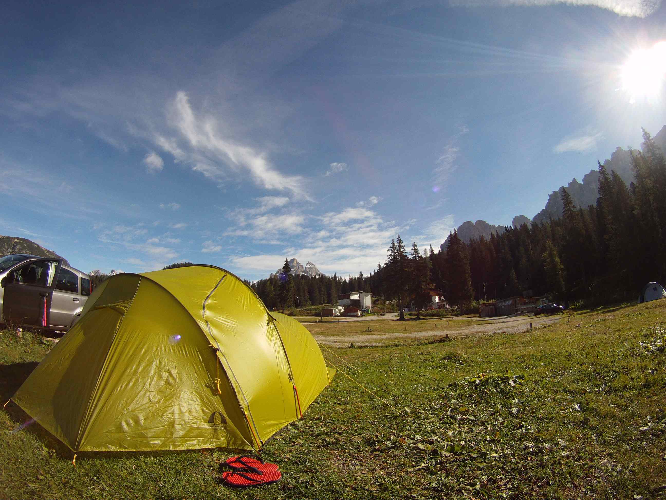 So we camp at the bottom of Tre Cime park for 2 days in Misurina while waiting for the weather to turn better and also for us to eat well and sleep the jet lag away. The second day we head up to check out the approach to Cima Piccolissma and realize it wasn’t too complex to get to any of the route base since they are all scree field and all you would need to do it to find a line and muscle your way up! Most of the time it will be 3 steps up and 2 steps slide back down.