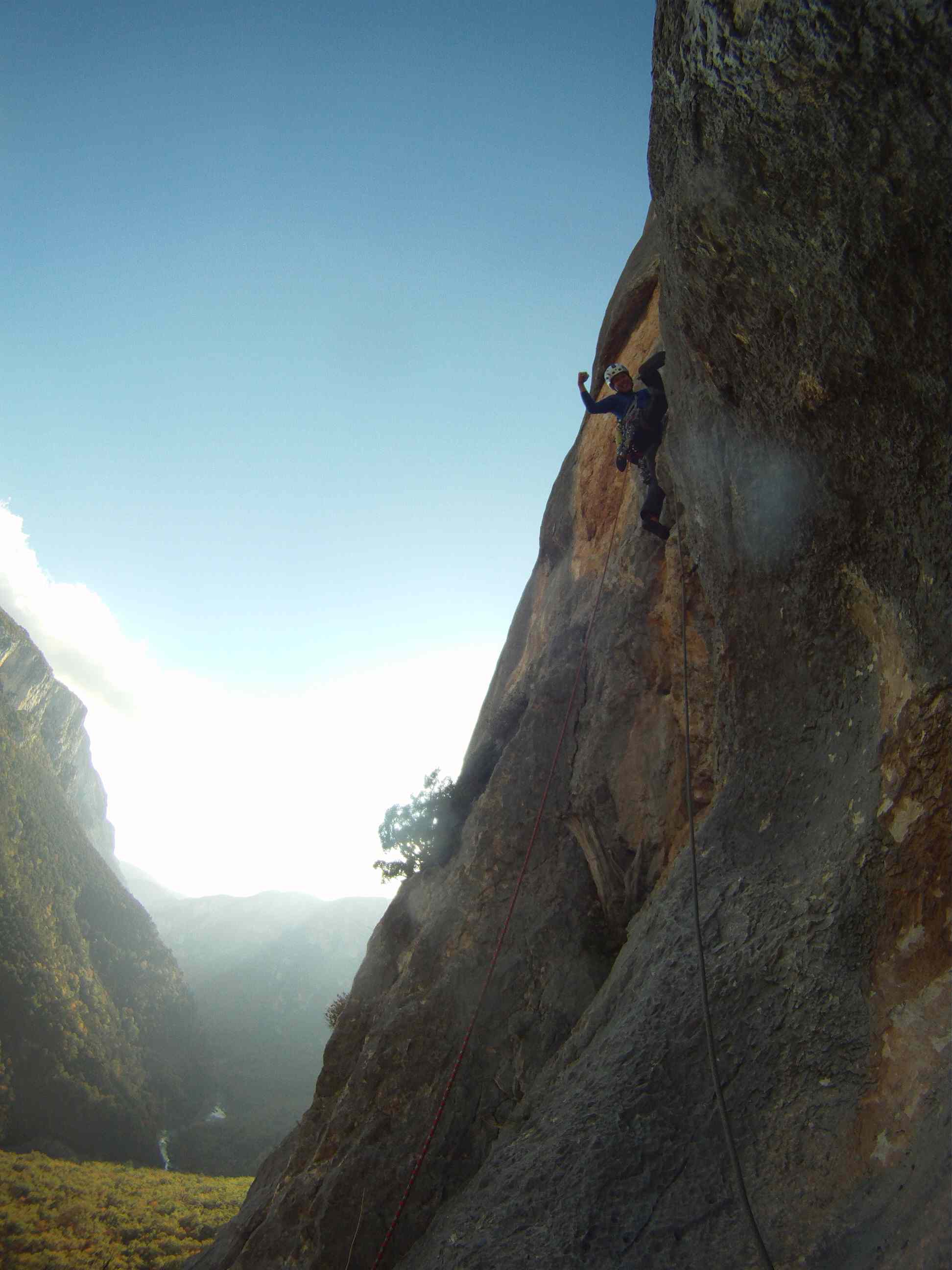 Climbing in Verdon is a new experience for me. It is usually approach, climb, descent and hike out or bivy. In Verdon, we stay in the town of La Palud camping in Uncle Morris lavender farm with endless cow or horse moaning day and night( I’m sure because they are cold) and drive to the crags which is usually within 10km in windy roads. You will find the route which you want to climb, by very good guess work or the occasional names which is written on the rocks near to the anchors. And rap down from the chosen anchors, into a sea of bolts in a clean sheet of gray or orange limestone. Sometimes you end up in a garden in the middle of the wall other times you end up at the bottom of the gorge with 2 ways out.