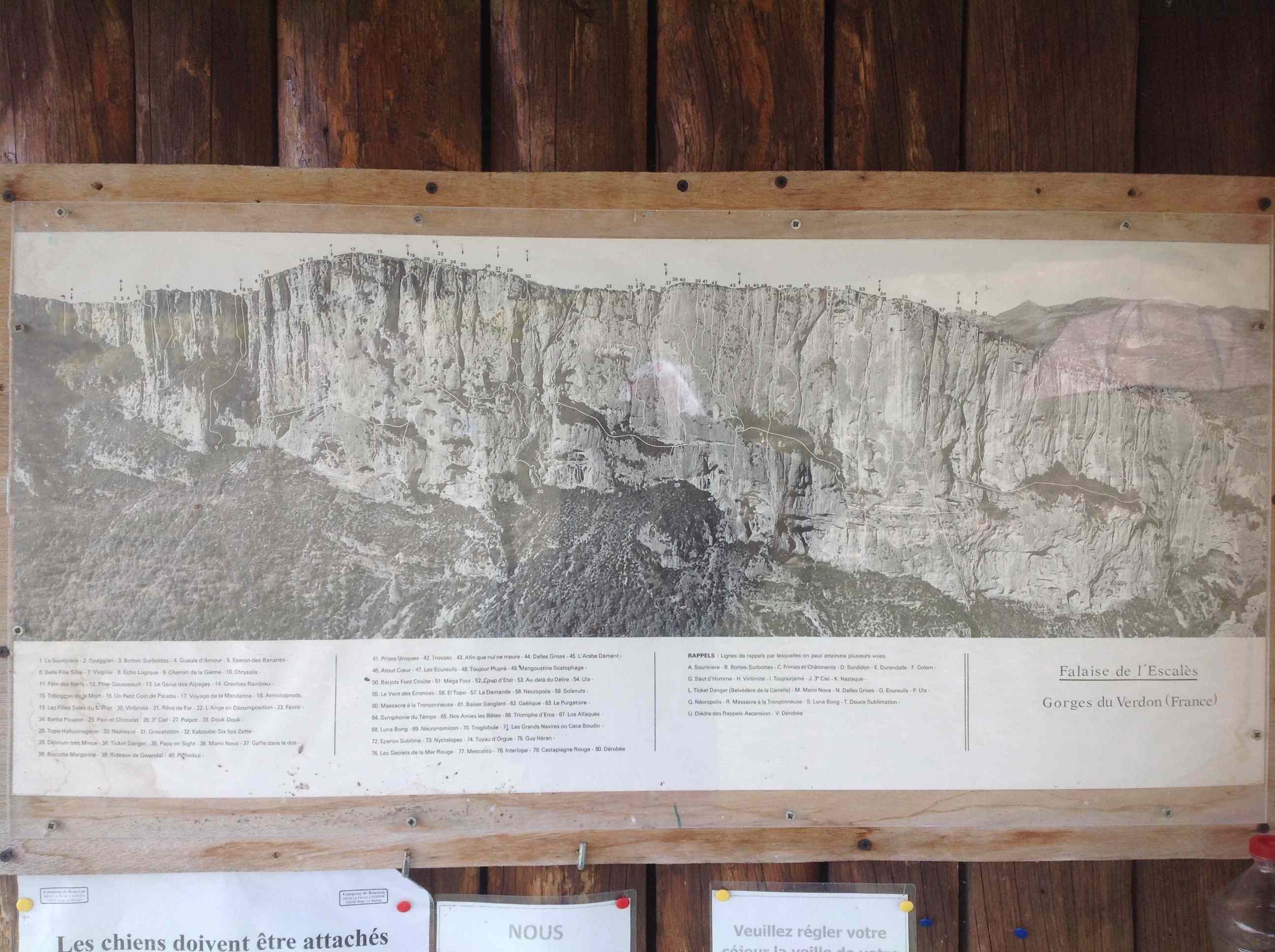 So we were climbing a few ‘get ready climbs’ in Verdon and thinking we are pretty ready for some Verdon adventure and I’m dying to get on some harder and longer climbs in Verdon. Kelly and I discussed for sometime and looked at the topo at the dish washing area in the campsite for like 150 times and decided that we should climb Pichenbule as our first serious outing since our good friend Sebastian also recommended the climb.