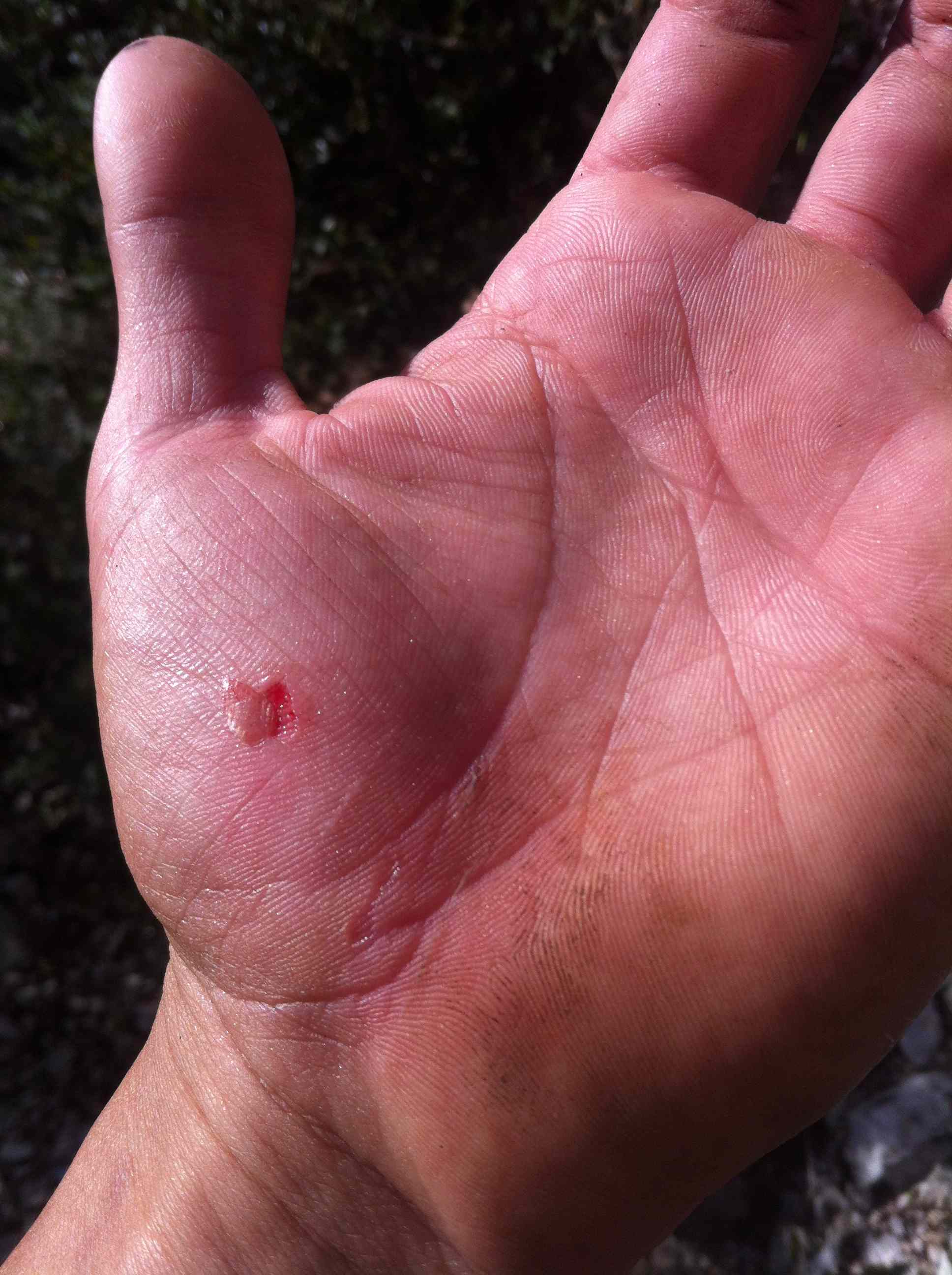 Off we went rapping in from Dalles Gris the day after a heavy rain. This time we were almost on schedule until our rope got caught 3 times on the 5 X raps down the gorge. Never mind about that, during the approach to the climb in our climbing shoes, I slipped and fell and cut my palm open. C’est la vie, I gunned off the first 2 pitch and Kelly stitched up pitch 3 and 4. Apart of being polished, I feel super comfortable on this route with laybacks, jamming and placing gears where run outs are more than 5-15m bolts apart. It feels like crack climbing with a occasional bolt but with some character in it that is hard to describe.