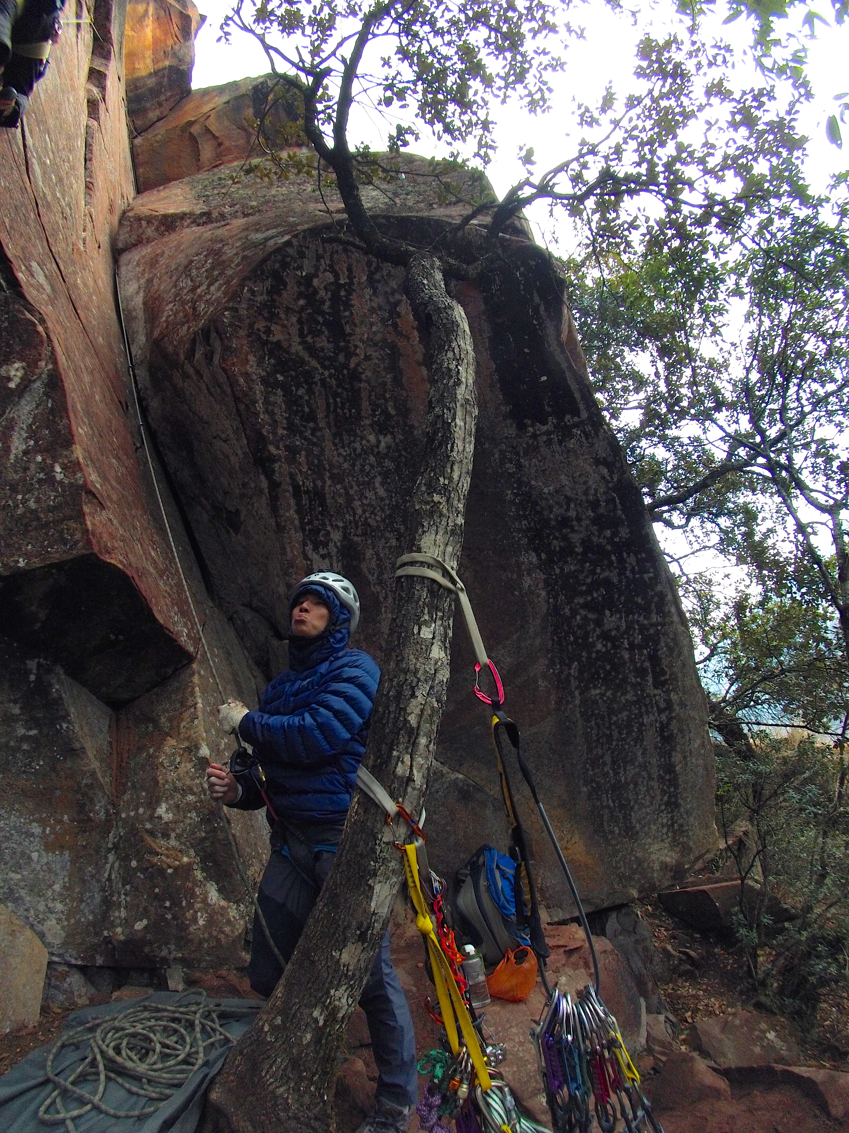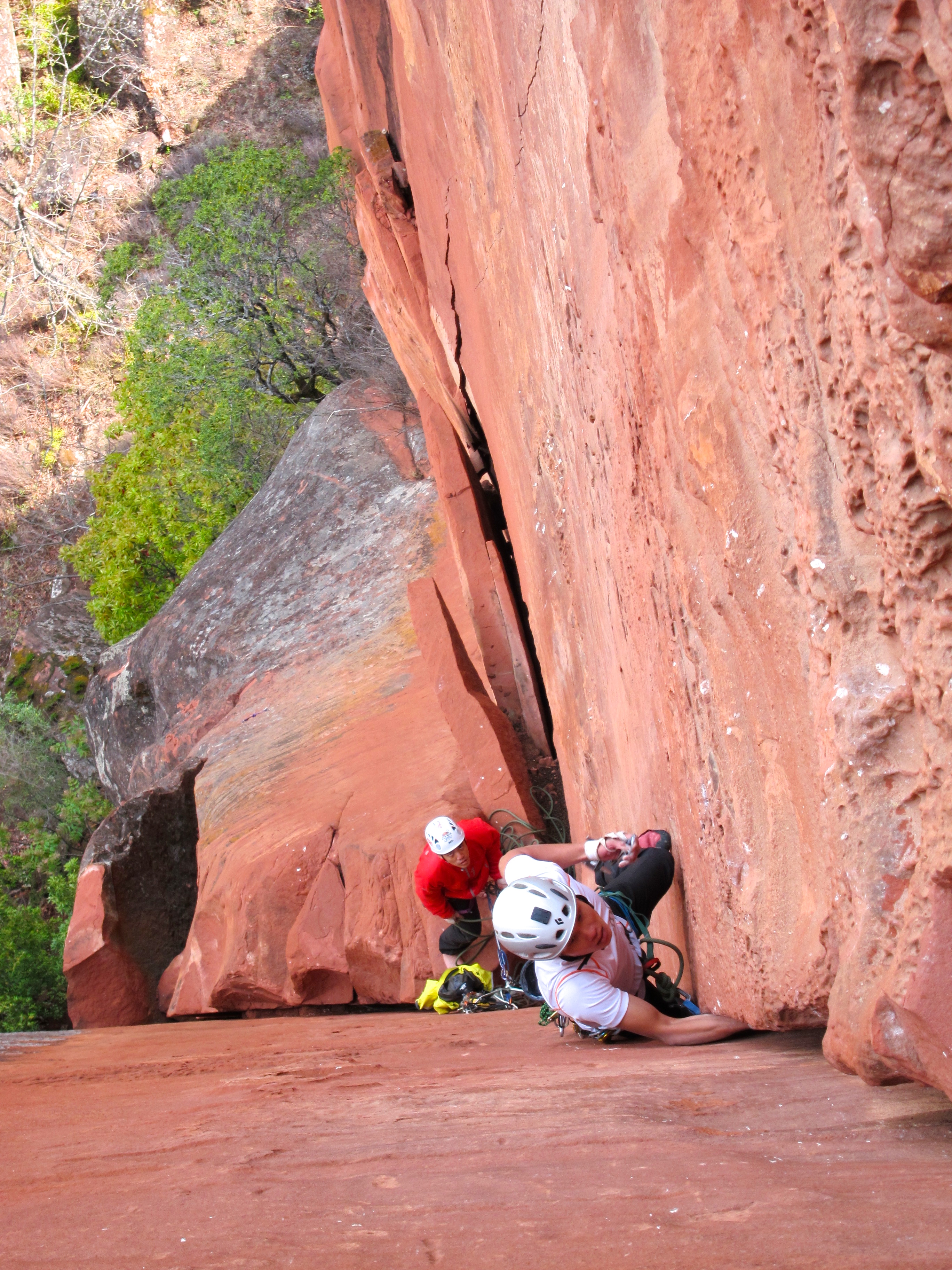 Working on my 2014 resolution, which is to climb a 5.12 trad route in Yosemite, I decided to try to onsight as many 5.11s as possible and work on as many 5.12 as possible. The hardest route could be Japanese Cowboy, 日本牛仔, 5,12+ which is a steep layback on 6 inch cracks all the way up to a tiny crack that barely takes C3 0. It was a little too much for me as I haven’t climbed a lot of overhanging crack lines but I make it a point to red point that route on my next trip back to Liming.