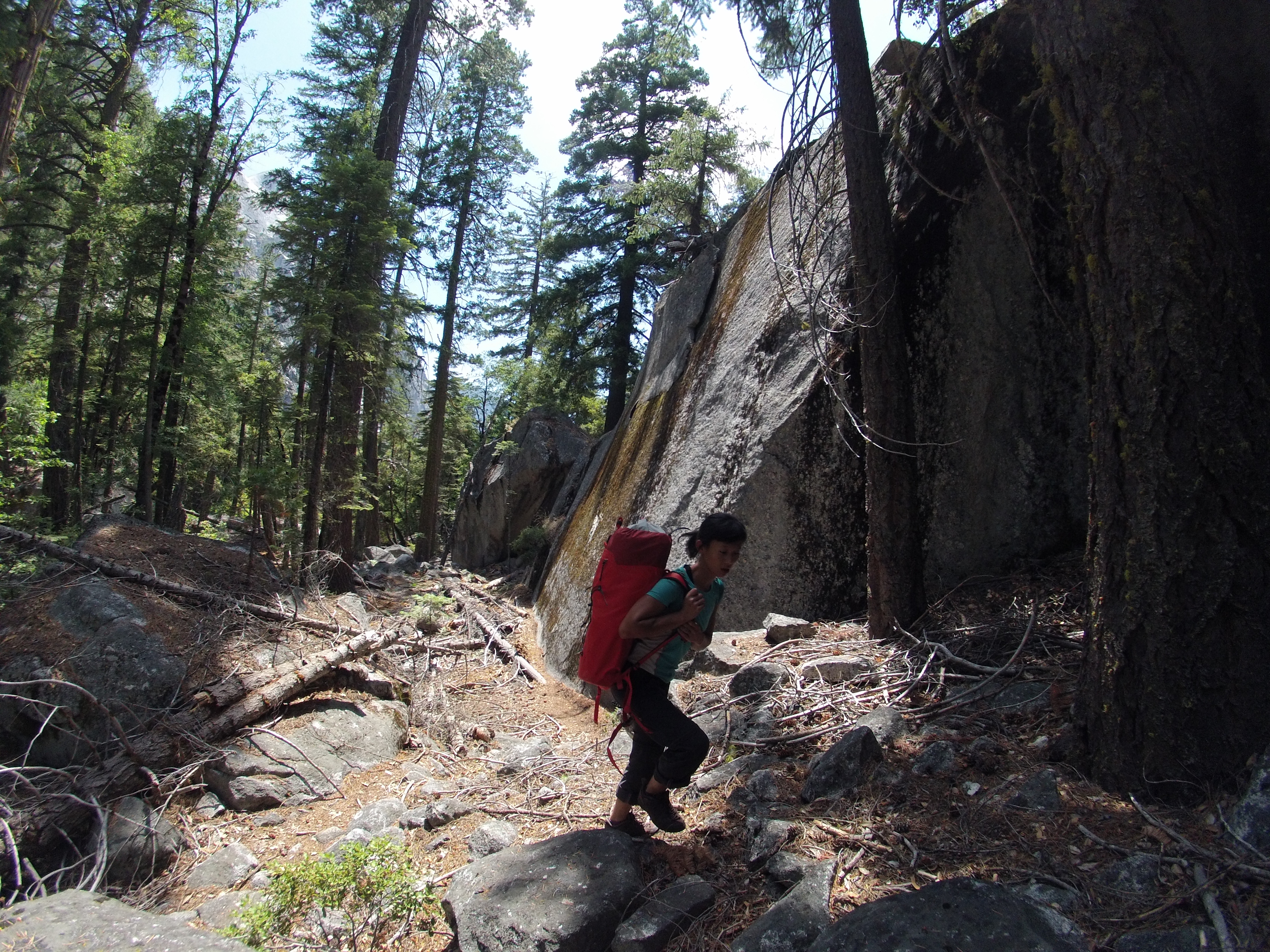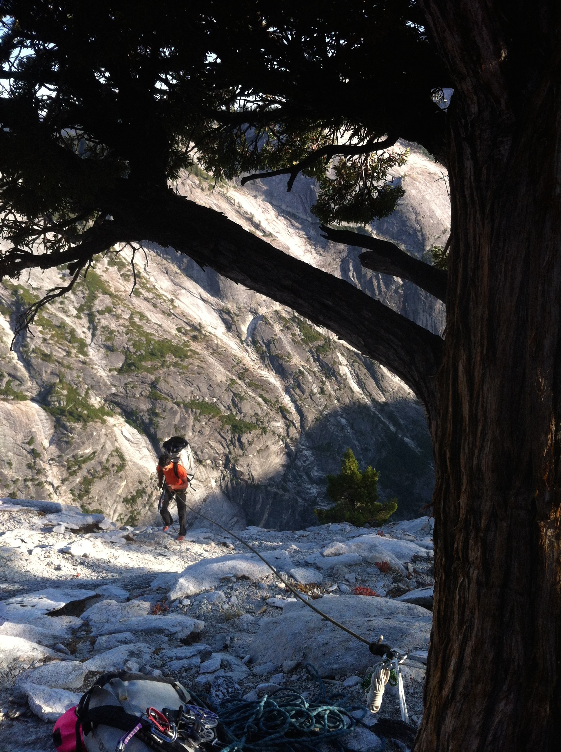 We decided that we wanted to get on this beautiful wall and quickly made plans to hike our first load up the base of the wall. Supertopo says 3hrs on the approach and 4 hours on the access pitches and as usual I find the guidebooks in America is always very optimistic or just superhuman, nuclear powered timings.