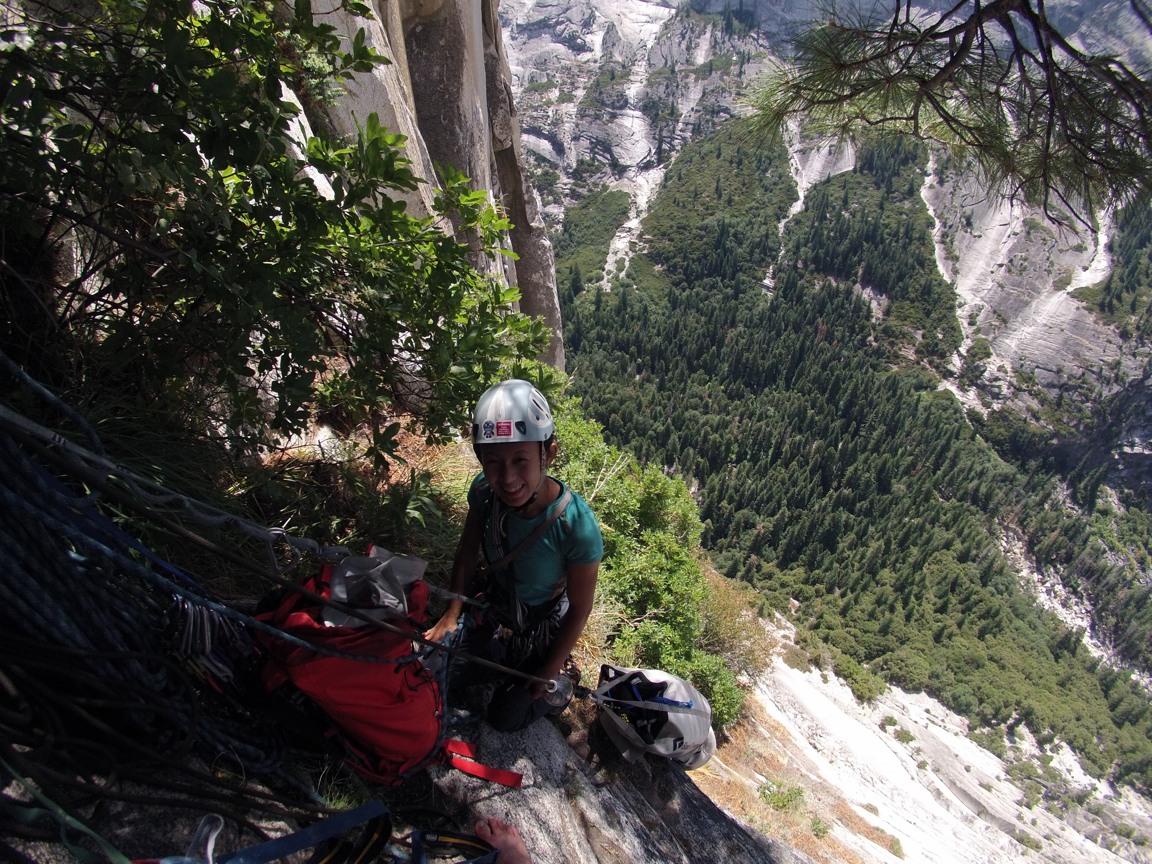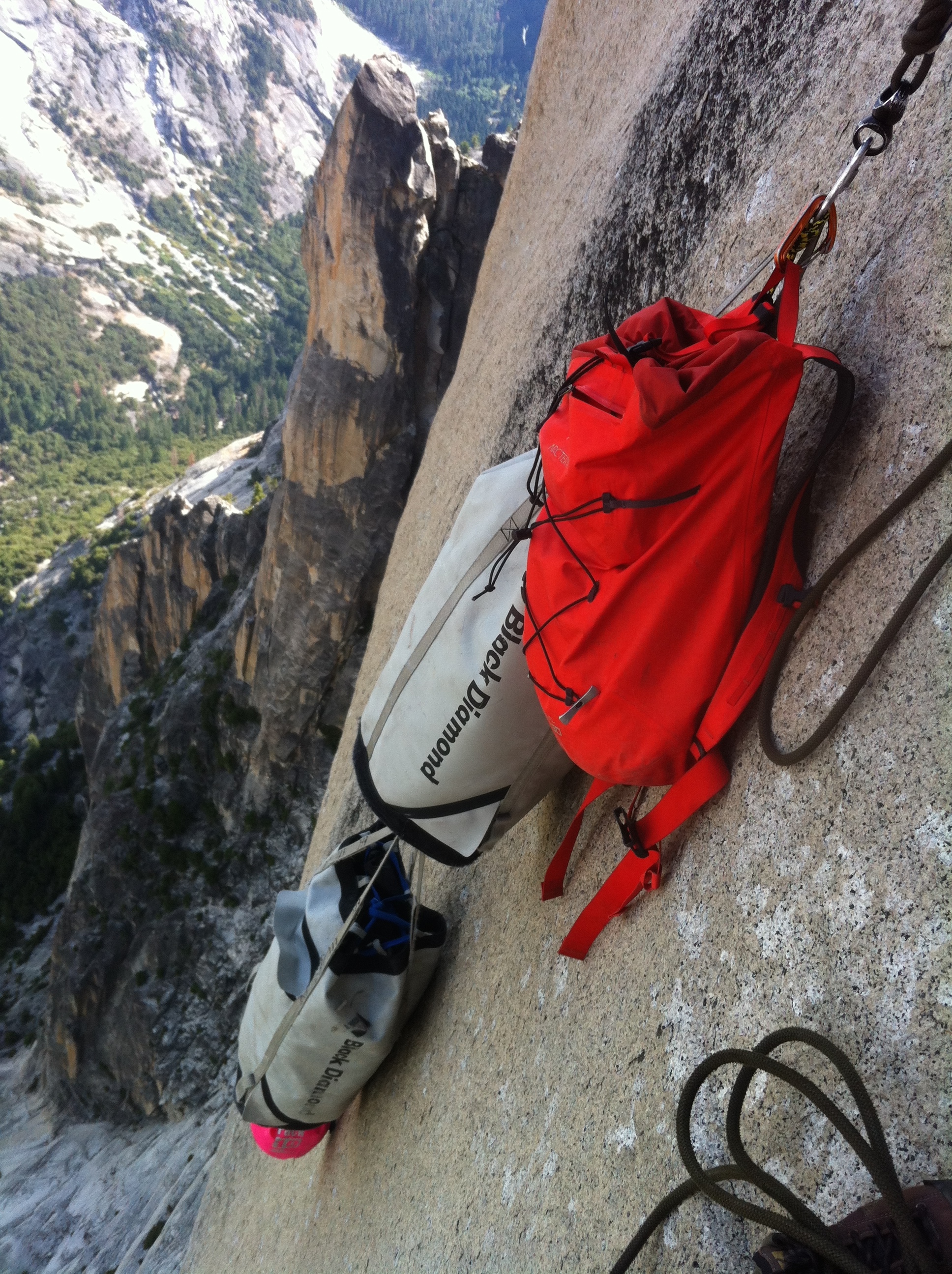 The first 800ft of fixed ropes to the ledge is brutal. We packed 2 haul bags and one Arc’teryx FL 30 pack and had to shuttle the bags in a leap frog method in order to have enough rest. However the bag with the most water was too heavy for Kelly to carry and jug and I figured that it would be much faster for me to make a few more round trips to get the bags higher than to have my wife suffer with a bag that is close 1/2 her weight.