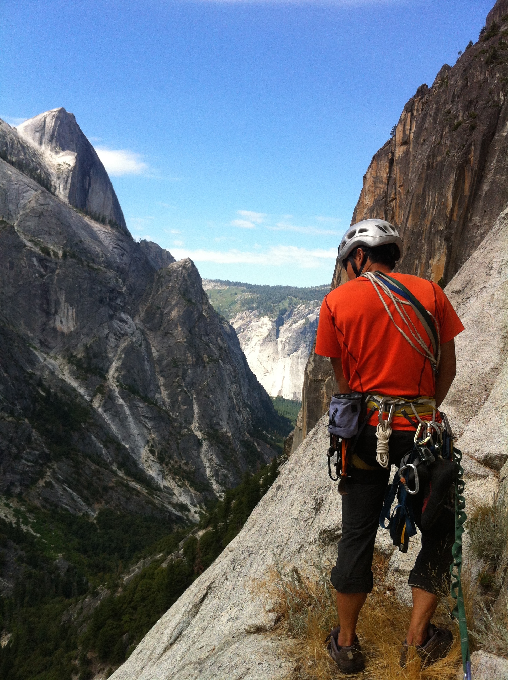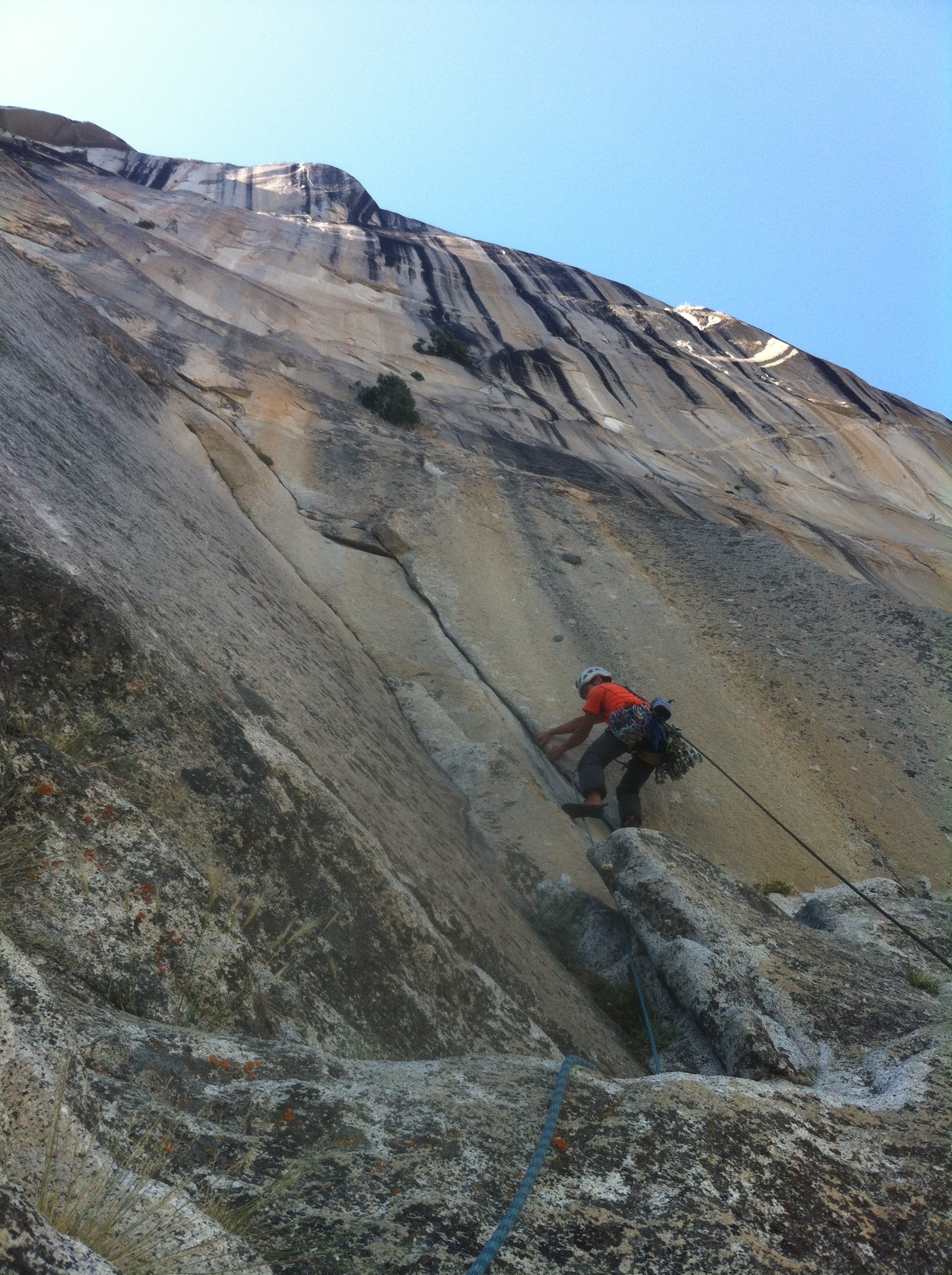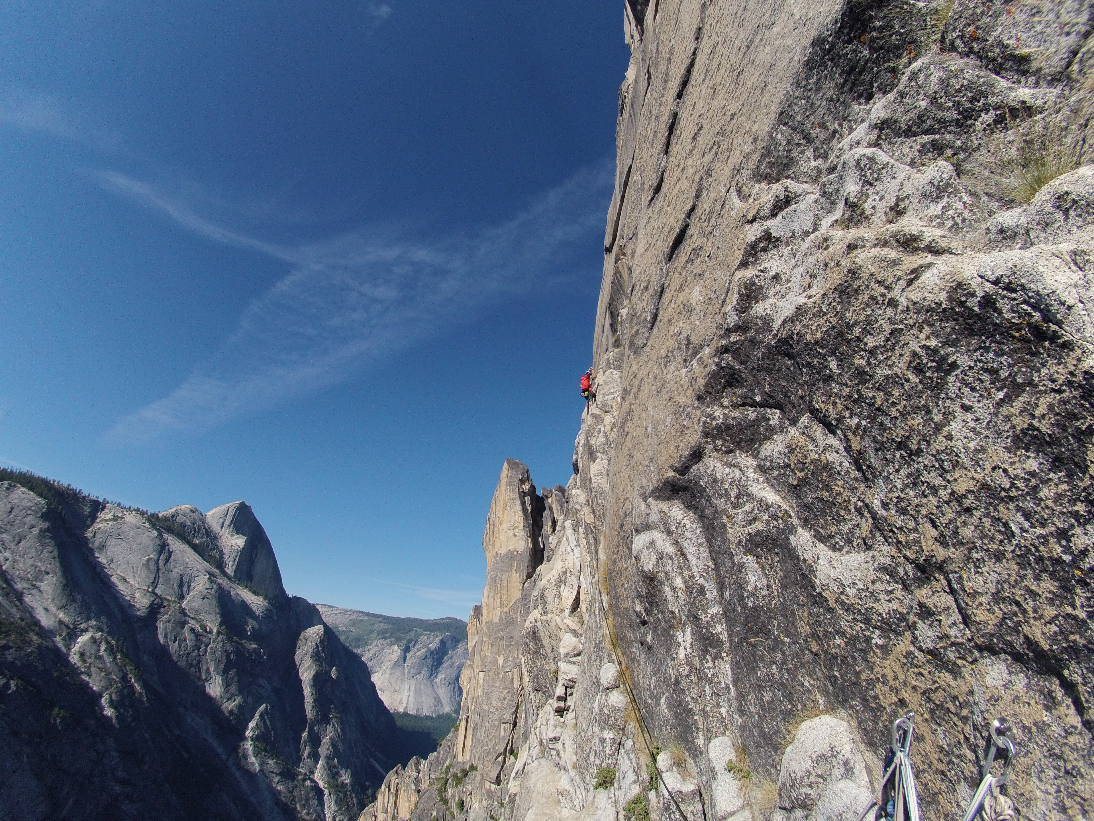 The 10d off width and the 10c hand cracks at the top of the route are truly the pitch of the route, with long 120-150feet pitch with just perfect hand cracks soaring to the top of Watkins. It already felt like the beer keg is waiting for you at top. But when you top out and realised that the walk down is 7 miles down with knee busting switch backs, its a good idea to drink up all the water you have and have some dinner before heading down for the 5 hours walk to the car!